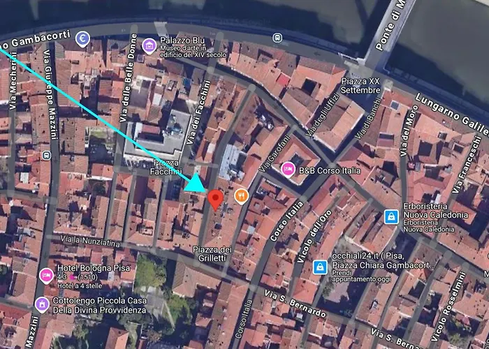Daire, Miracoli Meydanı'a 18 dakikalık, Vaftizhane'a 25 dakikalık yürüme mesafesindedir. Trattoria Da Michele, Pasticceria Principe konaklama tesisinden yürüyerek 5 dakika mesafede bulunmaktadır. Pisa Kulesi ve Chiesa di Sant'Antonio Abate Kilisesi kısa taksi yolculuğu mesafesindedir. Konaklama tesisi Pisa Centrale Tren tren istasyonuna 270 metre ve Stazione 5 otobüs durağına 150 metre uzaklıktadır.